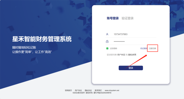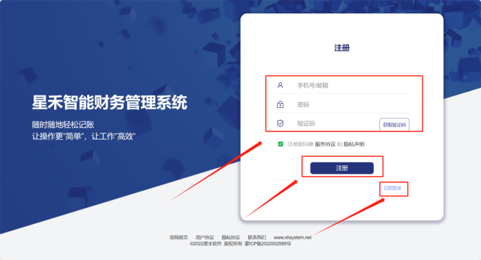 ( 2) 输入手机号、密码,录入收到的验证码,点击注册,注册完成后点击立即登录。