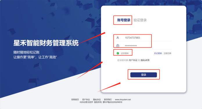 ( 1 ) 使用账号登录,输入账号、密码,点击登录。下次登陆时不需要录入密码或想快捷都登录则勾选记住密码。