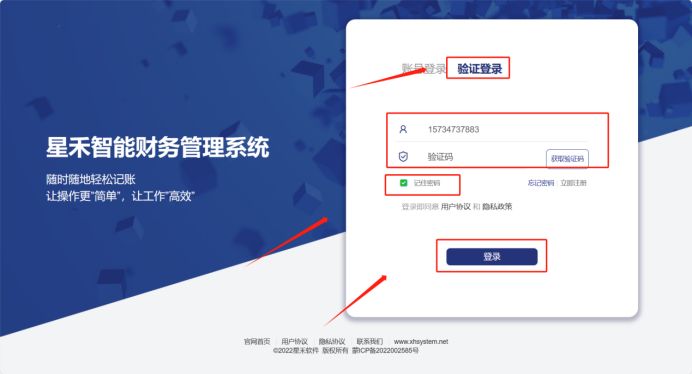 ( 2 ) 使用验证登录,输入手机号和收到的验证码,点击登录。下次登陆时不需要录入密码或想快捷都登录则勾选记住密码。