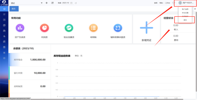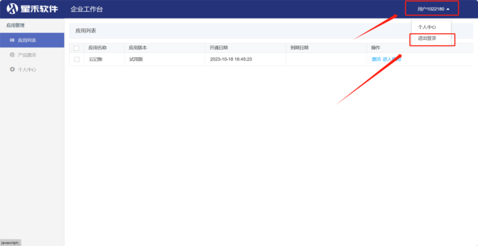 ( 2 ) 退出时鼠标放置用户上,出现退出登录按钮,点击即可。